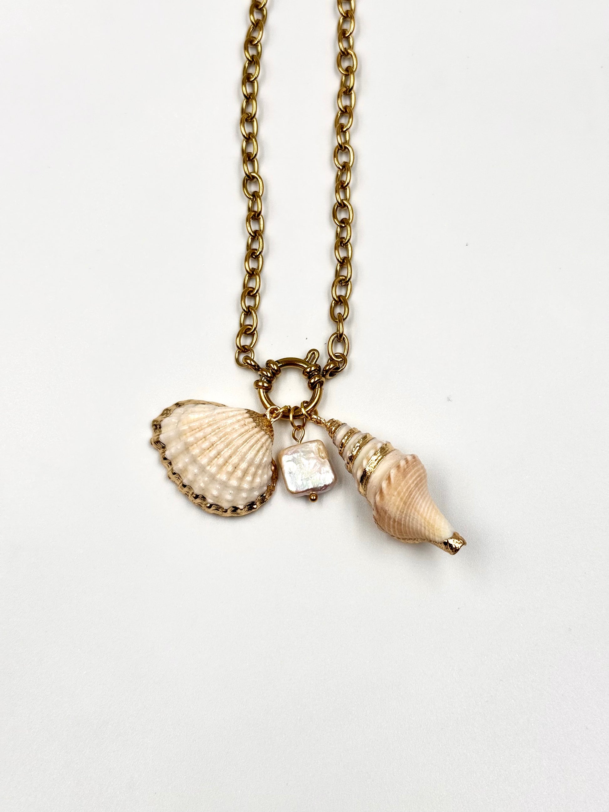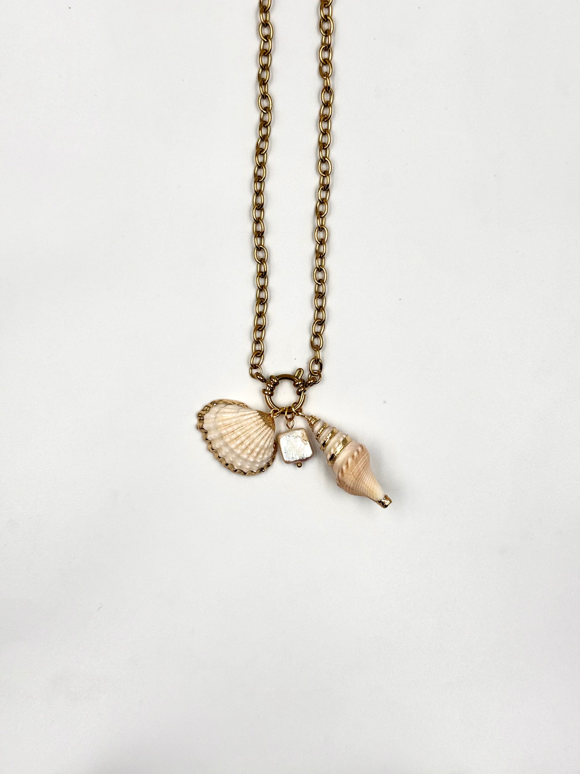 A golden charm necklace inspired by coastal elegance and timeless summer glamour.