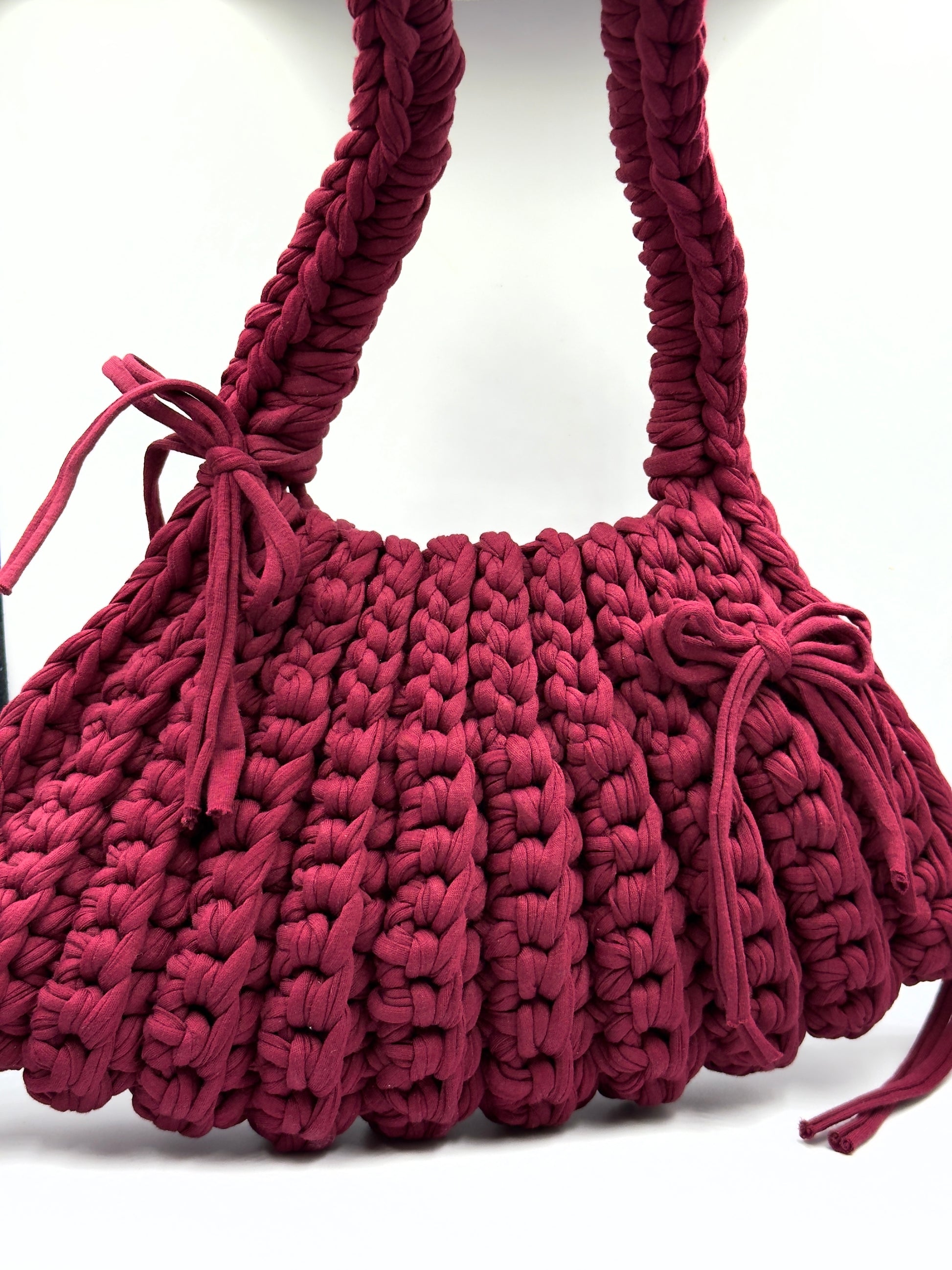 Available in two silhouettes: a sculpted handheld version and a statement shoulder version.